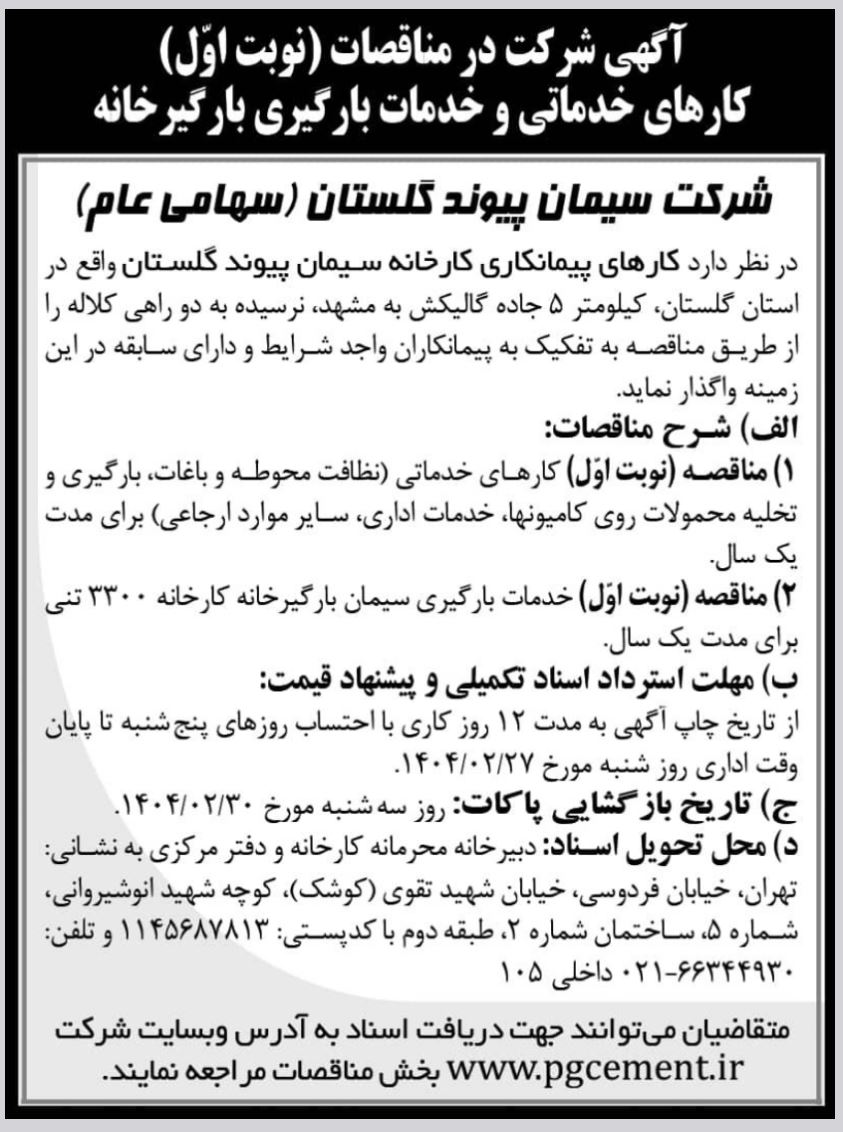 مناقصهنوبت-اول-خدمات-بارگیری-سیمان-بارگیرخانه-کارخانه-3300-تنی-سیمان-پیوند-گلستان