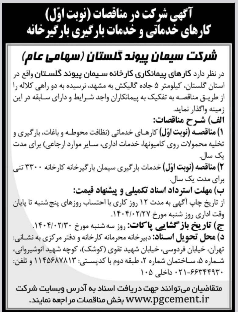 مناقصهنوبت-اول-کارهای-خدماتی-کارخانه-سیمان-پیوند-گلستان